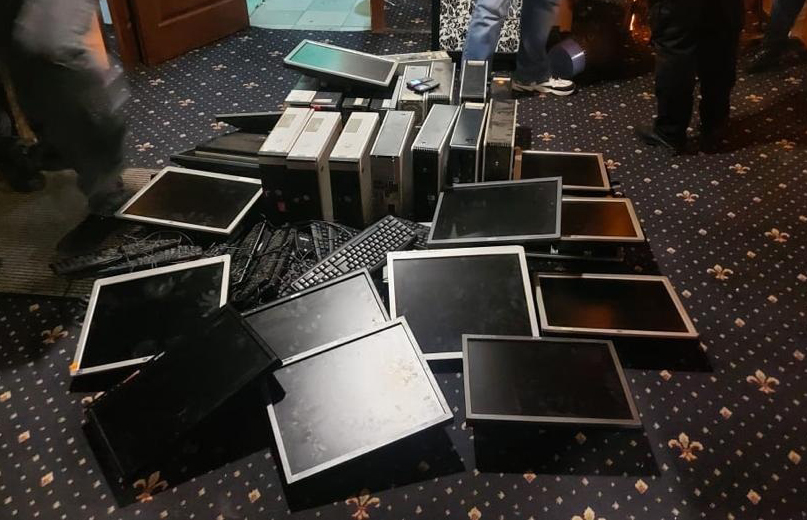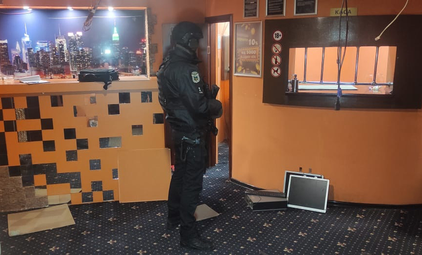 Попри це поліцейські зайшли до закладу та застали адміністраторку та кількох відвідувачів. Останні намагались переконати правоохоронців, що є вантажниками і збираються виносити меблі з приміщення. При цьому комп’ютерна техніка була прихована у нішах стін, стелі та інших місцях.